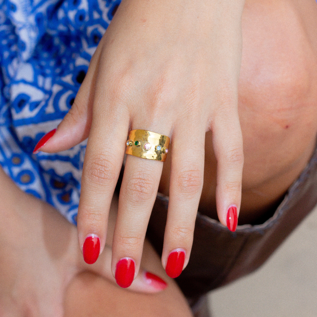 The Carmen ring is beautifully designed with colorful CZ stones and a textures finish for added dimension. The vibrant stones represent Mexico's beautiful and colorful borders.